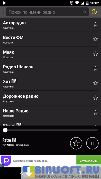 Радио России для Android – виртуальный агрегатор российских радиостанции. Умеет сканировать передаваемые в сеть виртуальные трансляции эфирных программ радиостанций и воспроизводить их.
