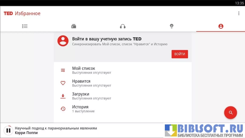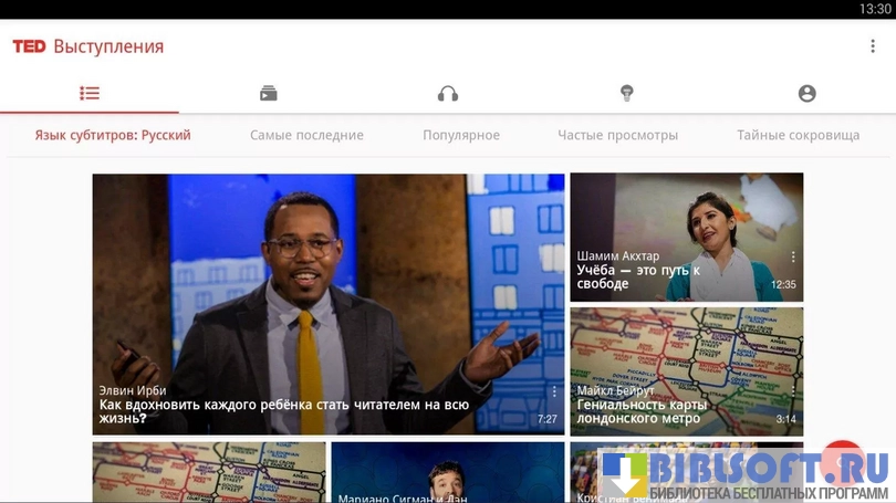 TED – информационный агрегатор собирающий выступления популярных людей для Android устройств. Умеет находить, собирать и воспроизводить выступления с конференций, семинаров и других массовых мероприятий разной тематической направленности.