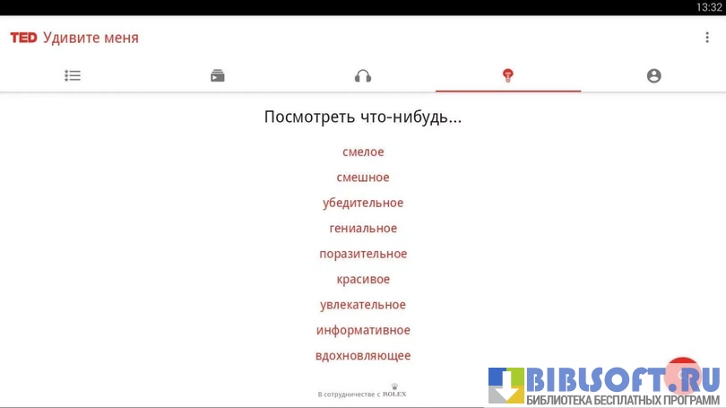 - Анализирует время, когда пользователь запускает TED, и автоматически «собирает» в «TED-плейлист» выступления, которые пользователю «удобно» смотреть/слушать по времени;