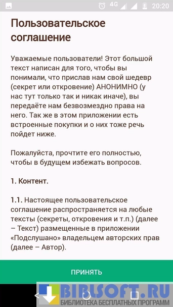 Подслушано – это модная развлекательная площадка для Android устройств, где люди делятся своими самыми сокровенными секретами и новостями из жизни. Ключевой момент в том, что делается это - анонимно.