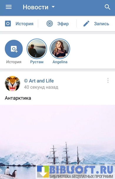 Приложение обеспечивает доступ ко всем основным функциям социальной сети: личным сообщениям, групповым чатам, пабликам и группам. Каждый пользователь может поделиться фотографиями, создавать записи и репосты, смотреть видеоролики, слушать аудиозаписи. Доступен фильтр новостей, закладки, Черный список для нежелательных контактов, смайлы, бесплатные и купленные стикеры.