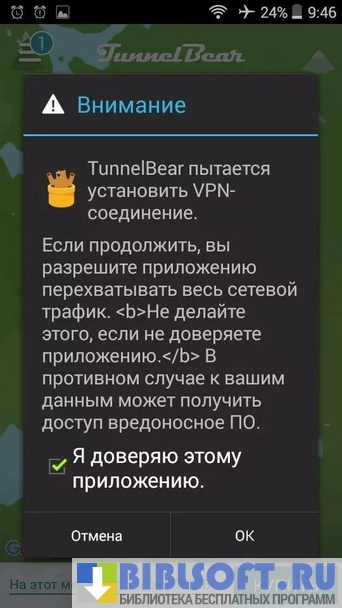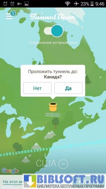 Tunnelbear – один из самых популярных VPN клиентов для операционной сети Android, основным преимуществом которого является качественный и регулярно обновляющийся сервис.