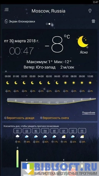 - Точный прогноз на протяжении всего дня, всей недели;