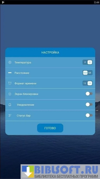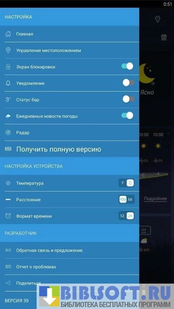 - Оповещения, которые уведомляют о погоде в данный момент, при необходимости можно отключить;