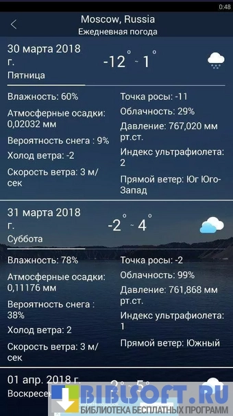 Weather Forcast - удобный прогноз погоды, который будет всегда с вами. В любое время можно посмотреть погоду в той или иной точке мира.
