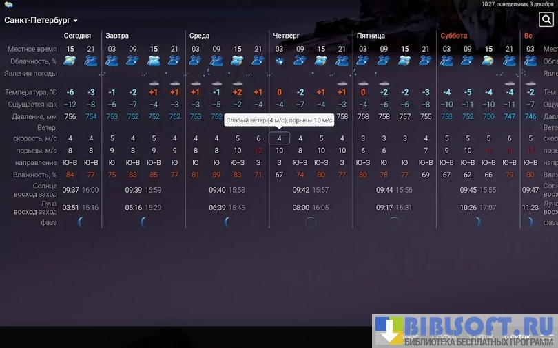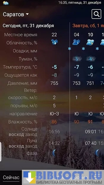 Weather rp5 — приложение для просмотра прогноза погоды на Android устройствах. Позволяет узнавать точное предсказание температуры и выпадения атмосферных осадков на несколько дней вперед. Обладает интерфейсом с анимированными погодными эффектами, благодаря которым получение информации становится красивым и наглядным.