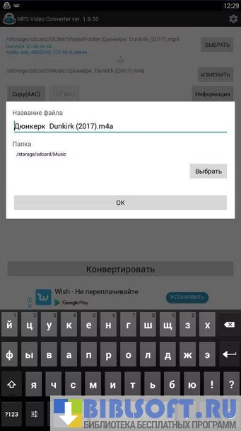 Конвертер позволяет редактировать мультимедийные файлы на устройстве, без необходимости задействования компьютера. Можно вырезать дорожку (преобразовать видео в аудио) или изменить ее формат.