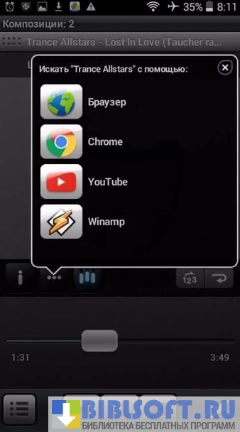 - автоматический поиск всех музыкальных композиций на устройстве;