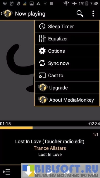 Функция сна программы позволяет смартфону или планшету Android переходить в спящий режим — при этом воспроизведение музыки не прекращается.