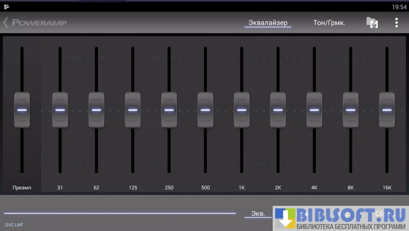 - Корректирует параметры аудиоканалов согласно настройкам графического эквалайзера;