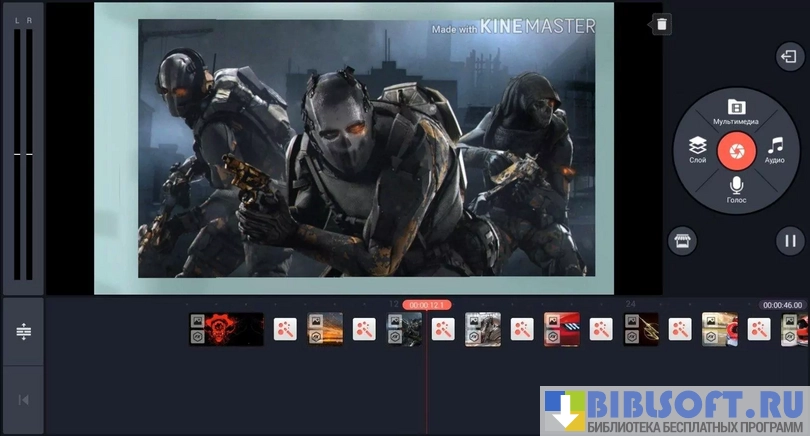 KineMaster – мощный видеоредактор для Android, со встроенным мультиконвертером видеофайлов, редактором изображений, поддержкой «многослойной» раскадровки, инструментарием для работы с аудиоканалами и множеством других функций.