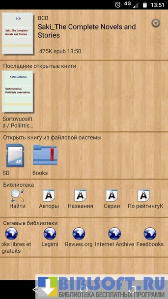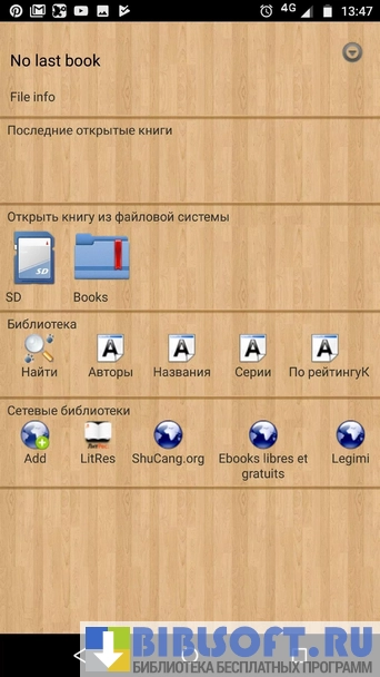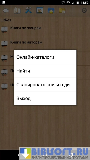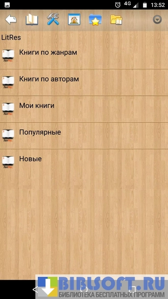 - Возможность использовать LitRes —магазин электронных книг (нужен доступ к интернету);