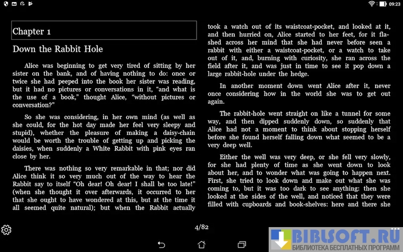 - Встроенный каталог литературы, находящейся в общественном достоянии. Пользователям доступно много классических книг. Если представленного ассортимента недостаточно, можно читать собственные книги из памяти мобильного устройства.