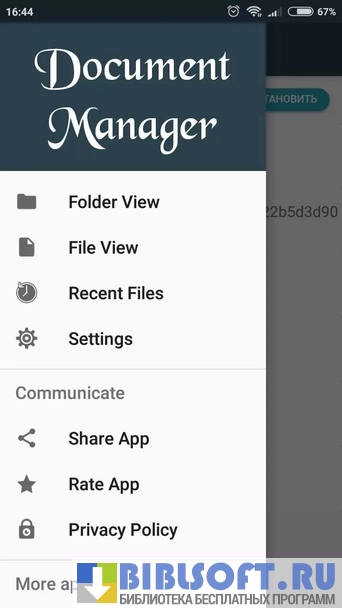 Document manager – это стандартный файловый менеджер, выполняющий функции просмотра, сортирования, переименования, удаления, копирования и редактирования документов разных форматов.