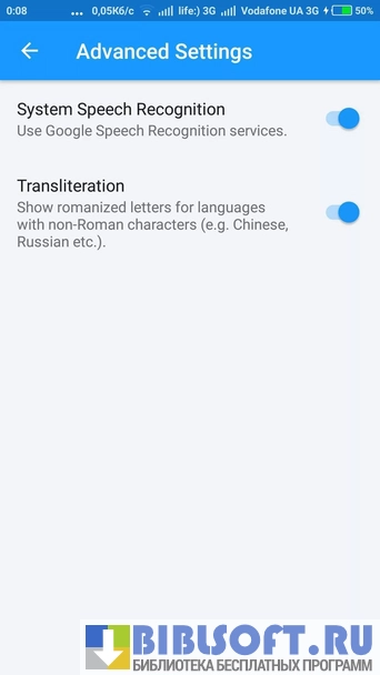 Программа автоматически определяет язык вводимого текста. После введения текста, в поле перевода нужно выбрать язык, нажав на флажок страны. Предусмотрена возможность делиться вариантами перевода. Доступен перевод текстов из буфера обмена. Можно подключать словари, чтобы увидеть разные варианты перевода, подобрать синонимы, узнать толкования многозначных слов. Пролистывая историю, в любое время можно вспомнить слова и фразы, которые были необходимы в прошлом.