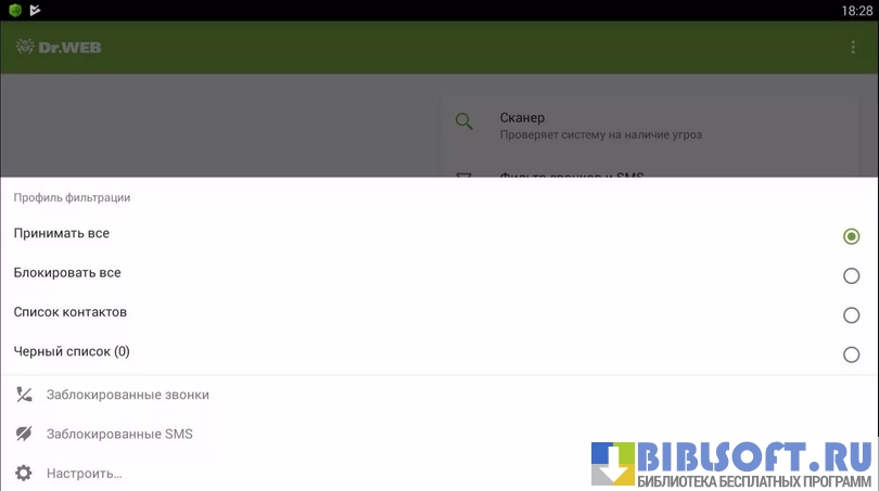 - система антиспам, защищающая устройство от вредоносных СМС-рассылок и нежелательных входящих звонков;