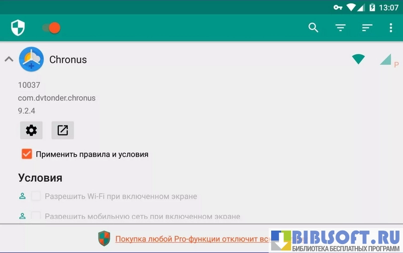 - Дает возможность разрешит или запретить доступ к сети любого приложения на устройстве;