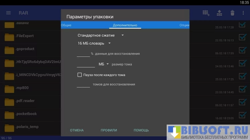 Возможности RAR