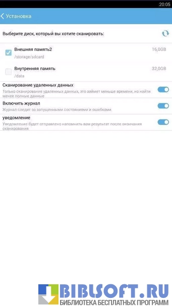 В главном окне приложения отображаются все функции. После выбора нужной опции, начинается сканирование. Продолжительность поиска информации обусловлена объемом памяти устройства. После завершения процесса поиска появится уведомление и список всех найденных файлов. Необходимо их просмотреть, отметить нужные и выбрать папку для сохранения.