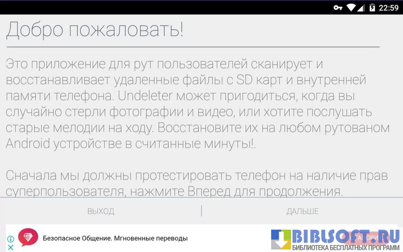 Undeleter - Восстанови Файлы – сервисная утилита, возобновляющая цифровую структуру удаленный файлов для Android устройств. Может сканировать файловую систему и портативные носители информации, подключенные к аппарату. Идентифицирует поврежденные информационные блоки хранимых файлов и «цифровые хвосты» удаленных.