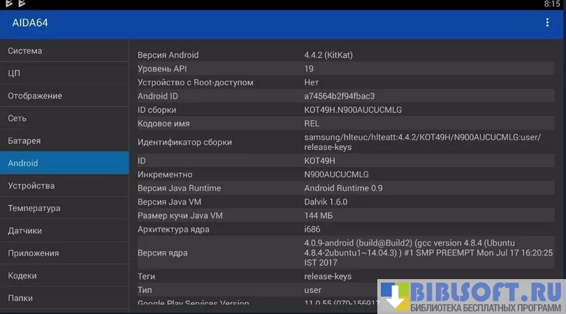 - Главное достоинство AIMD 64 — собранная в одном приложении вся доступная об устройстве и установленных приложениях информация.
