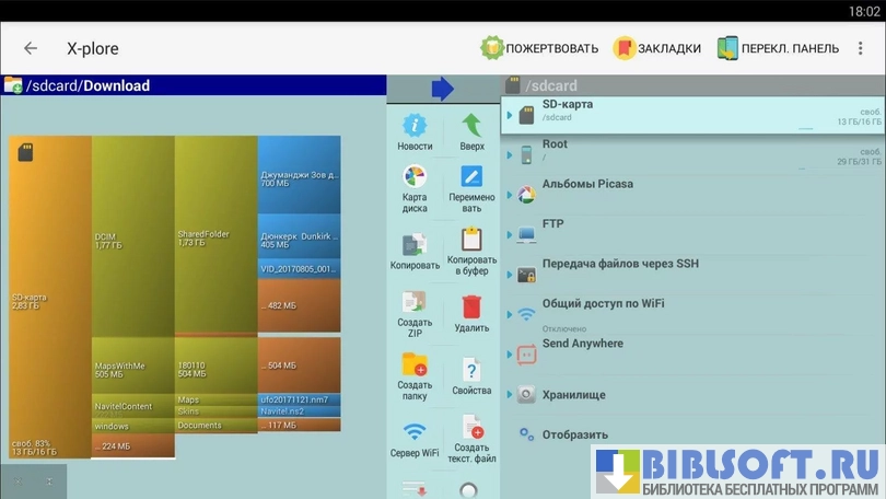 X-plore – мощный файловый менеджер для Android с двухпанельным древовидным отображением структуры файлов и интегрированным просмотрщиком мультимедийных и текстовых файлов.