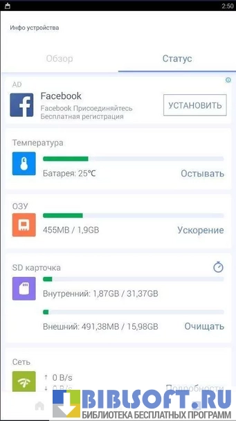 - Бустер памяти - ускоритель, помогающий быстро освободить память устройства.