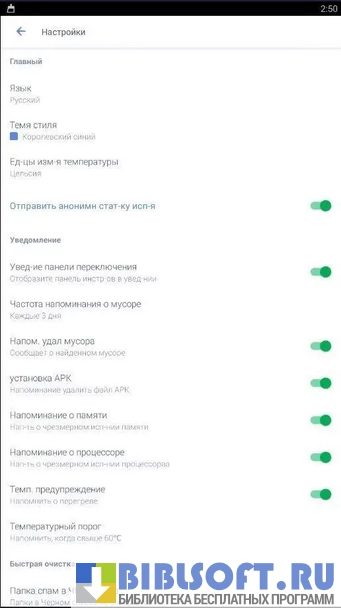 - Очистка оповещений: удаляет все ненужные уведомления и блокирует их, освобождая пользователя от отвлекающих всплывающих оповещений;