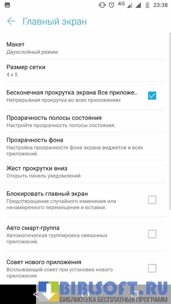 Лаунчер имеет два режима работы – одно- и двухслойный. Первый делает интерфейс похожим на меню iPhone, второй можно назвать более привычным. Изначально установлены два стола (с фирменными сервисами и программами), по желанию можно добавить еще несколько. Настройки лаунчера собраны в интуитивно понятное меню и хорошо организованы, что существенно облегчает настройку интерфейса.