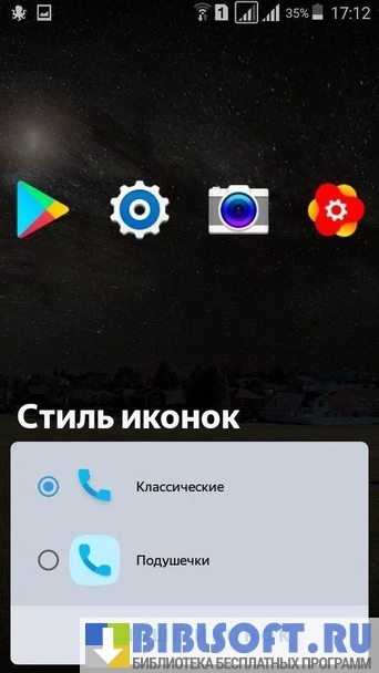В лаунчере есть встроенная подборка украшательств на разные темы. По умолчанию установлено две темы – темная и светлая, но можно изменять цвета многих элементов системы по своему усмотрению. Доступно изменение значков приложений с использованием встроенных или загружаемых тем. Каждая папка с приложениями становится отдельным экраном с виджетами и уникальным фоновым рисунком.