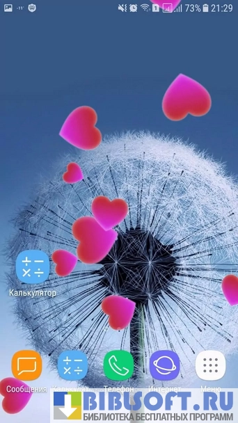 - Считывает информацию с датчиков устройства, реагирует на заданные события соответствующими способами (разлет купола одуванчиков, мерцания, инициация графического эффекта и т.д.), при условии использования интерактивных обоев;
