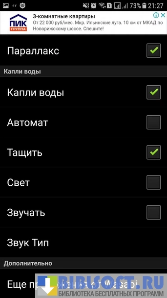 - Запоминает (для интерактивных обоев) указанные параметры реакции на события (разблокировка, тряска, системное оповещение т.д.);