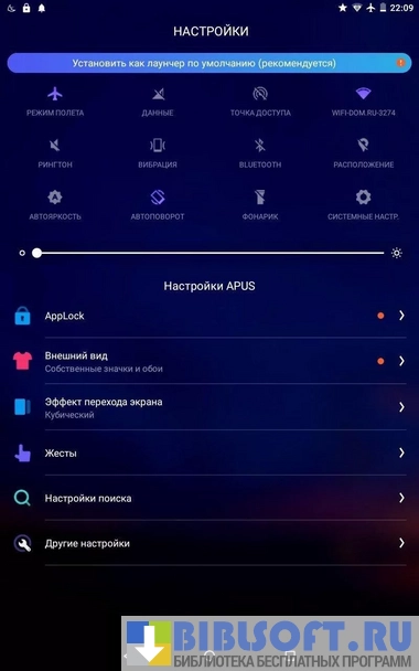 APUS лаунчер для Android – набор собранных воедино сервисных утилит, ускоряющих запуск приложений и оптимизирующих работу портативных девайсов под управлением Android.