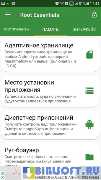 Root Essentials – функциональная программа, обеспечивающая полный контроль над работой устройства. Пользователь может калибровать аккумулятор, редактировать файлы, получать информацию об устройстве, просматривать все файлы, перемещаясь между ними одним движением пальца. Предусмотрена автоматическая установка приложений и игр на внешнюю карту памяти, когда внутренней памяти недостаточно.