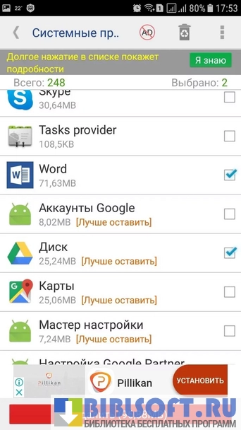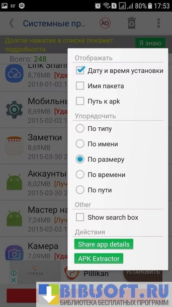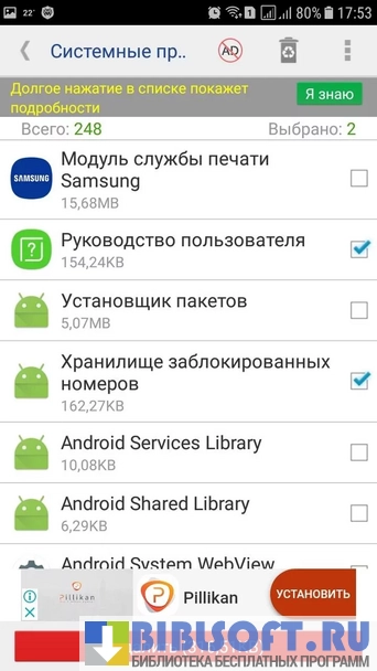 - возможность одновременного удаления нескольких приложений;