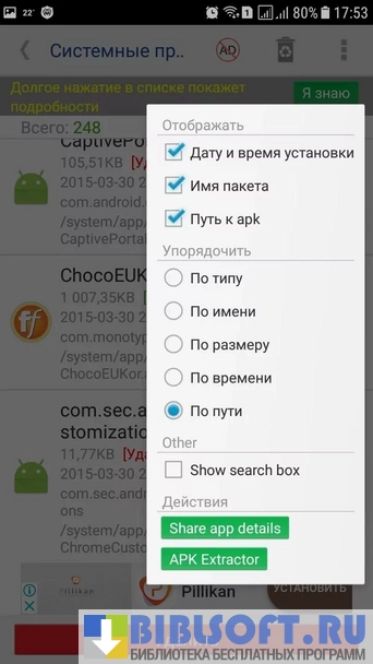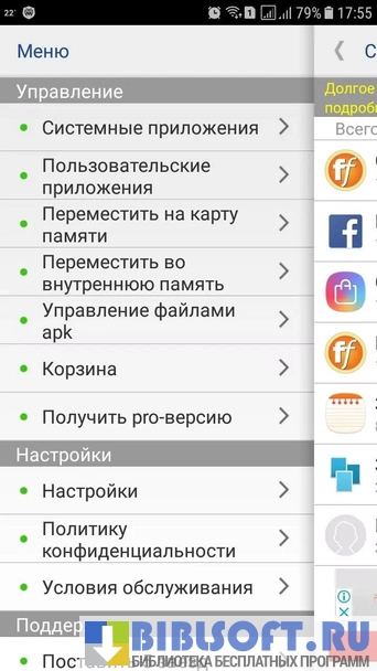 Менеджер приложений (ROOT) – функциональная программа для удаления приложений. Может применяться для поиска, установки и удаления apk файлов на картах памяти. Предусмотрено создание резервных копий, пользователь сможет восстановить исходное состояние программного обеспечения, если после удаления приложений возникнут сбои в работе устройства. Имеются подсказки для получения прав суперпользователя.