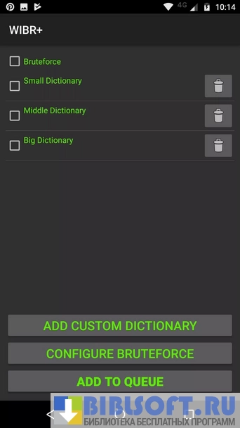 Приложение умеет работать с пользовательскими словарями, генерирует случайные и под определённую маску пароли, поддерживает организацию словарей и усовершенствованный контроль. Имеется поддержка теста через словарь либо через “bruteforce”. Тест через словарь подразумевает собой подбор пароля из списка. Если в ходе сканирования доступ к WiFi сети так и не был получен, это значит, что его нет в словаре. Разработчик добавил изначально 3 словаря и если их недостаточно, то можно импортировать дополнительно свои, что позволяет расширить границы теста на уязвимость.