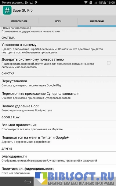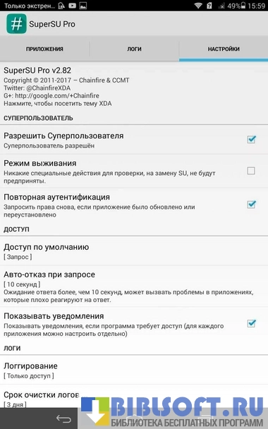 SuperSU – сервисная административная утилита для Android устройств, позволяющая осуществлять тонкую отладку установленных приложений без непосредственного изменения их программного кода.