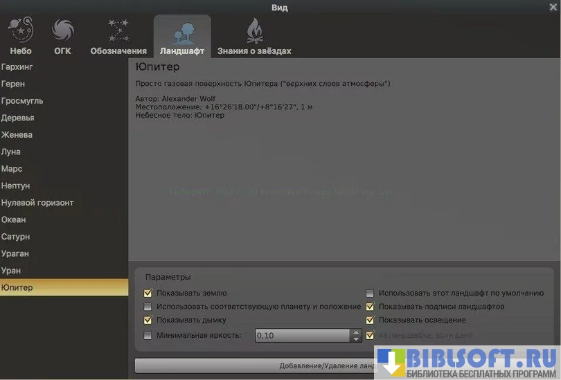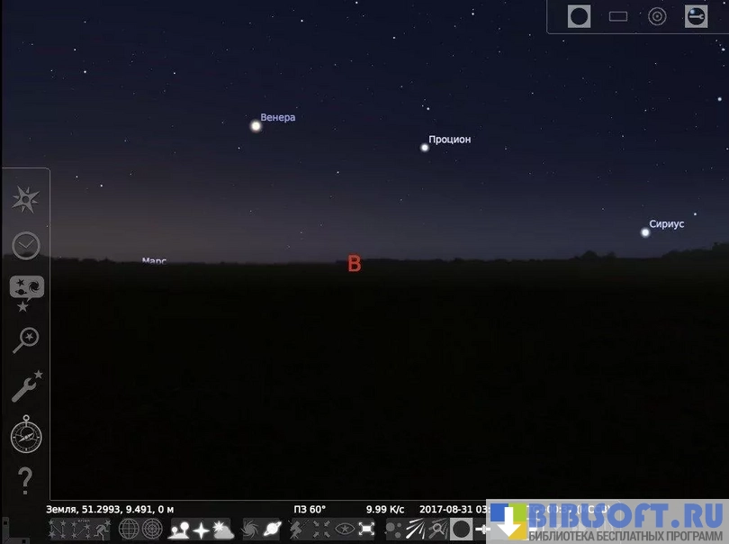 Stellarium – интересное астрономическое приложение для устройств под управлением macOS, позволяющее пользователю просматривать звездное небо в режиме 3D. Главная особенность программы – точно смоделированное звездное небо, а также возможность указать свои координаты для изучения созвездий в той области, где вы сейчас находитесь.