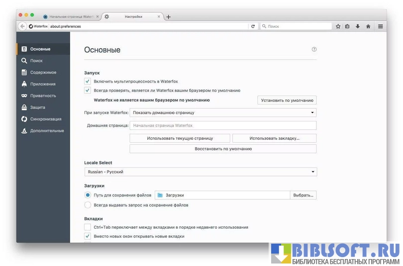 Waterfox для macOS – браузер с открытым исходным кодом. Создан на базе Mozilla Firefox и является его клоном с расширенными возможностями. Основная ориентация разработки заключается в поддержке расширений и высокая скорость работы.