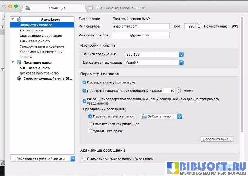- гибкие настройки поиска и фильтрации писем;