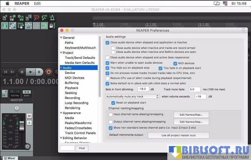 Reaper – многофункциональная программная среда для создания и обработки многоканальных аудио треков на ПК под управлением MacOS