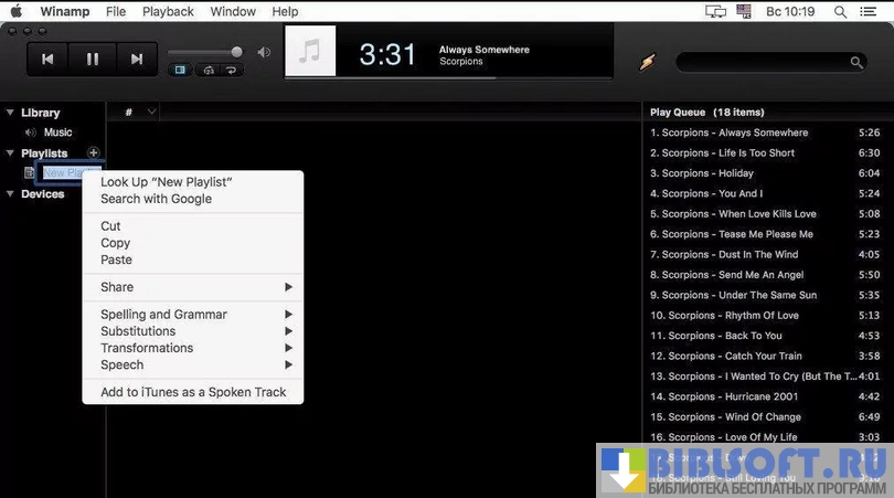 Winamp - один из самых популярных инструментов для прослушивания музыки на компьютере под управлением macOS. Поддерживает работу практически со всеми типами файлов аудио/видео формата. Обеспечивает тонкую настройку проигрываемого контента пользователем.