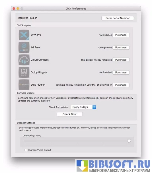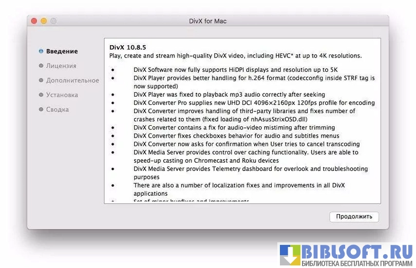 DivX для macOS – программный дистрибутив для создания, воспроизведения, редактирования и конвертирования видеороликов методом интерпретации видеоряда посредством использования DivX кодеков.