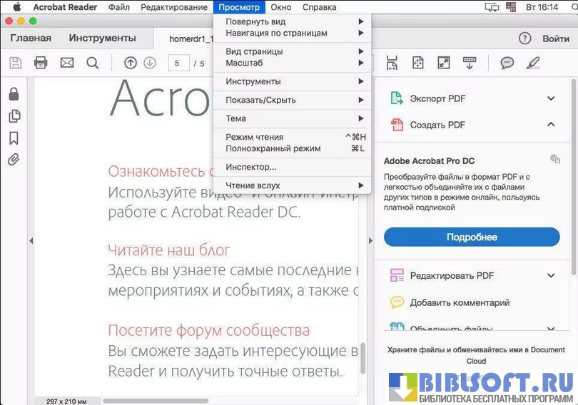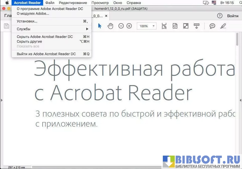 Adobe Acrobat Reader – программа для MacOS, позволяющая читать и распечатывать форматированные текстовые файлы pdf.