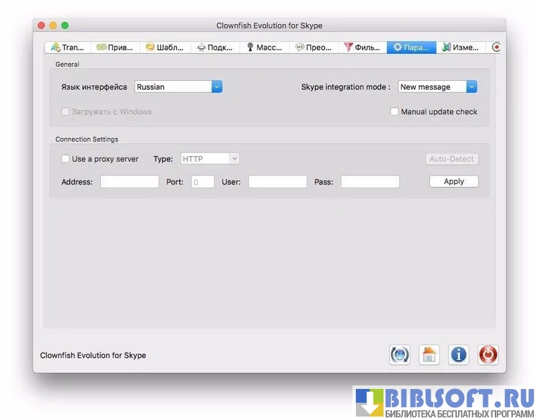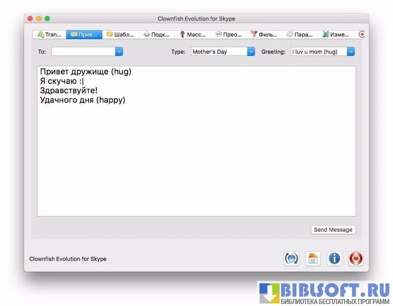 Инструмент Clownfish для Skype являет собой многофункциональное дополнение для Skype, существенно расширяющее его возможности. Можно изменять свой голос, преобразовывать текст в речь и организовывать широковещательные массовые рассылки текстовых шаблонных сообщений. На этом функции утилиты не ограничиваются, так как разработчики постоянно совершенствуют и расширяют ее функционал.