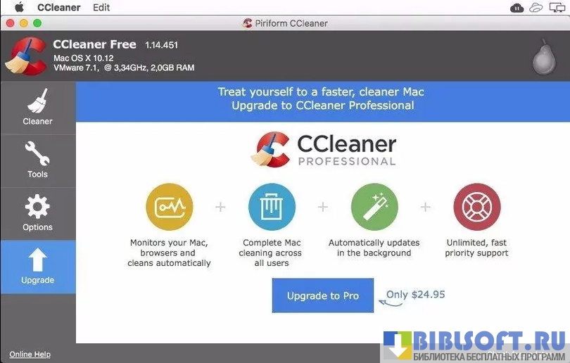 CCleaner для macOS – это инструмент для очисти системы от файлов, оставшихся после некорректного удаления программ, игр и утилит. Приложение способно устранять ошибки реестра, очищать его и создавать бэкап-файлы для его восстановления в случае удаления нужных файлов.