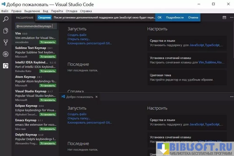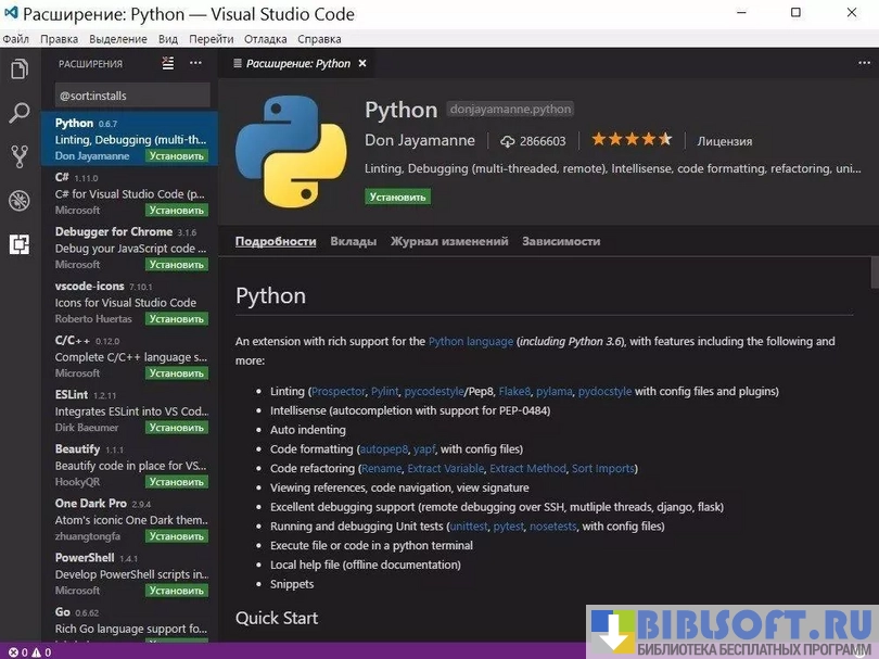 Visual Studio Code имеет встроенную поддержку основных языков программирования и самые необходимые расширения. После установки функционал программы можно расширить за счет установки различных дополнений, сделав из нее полноценную среду для своих нужд.