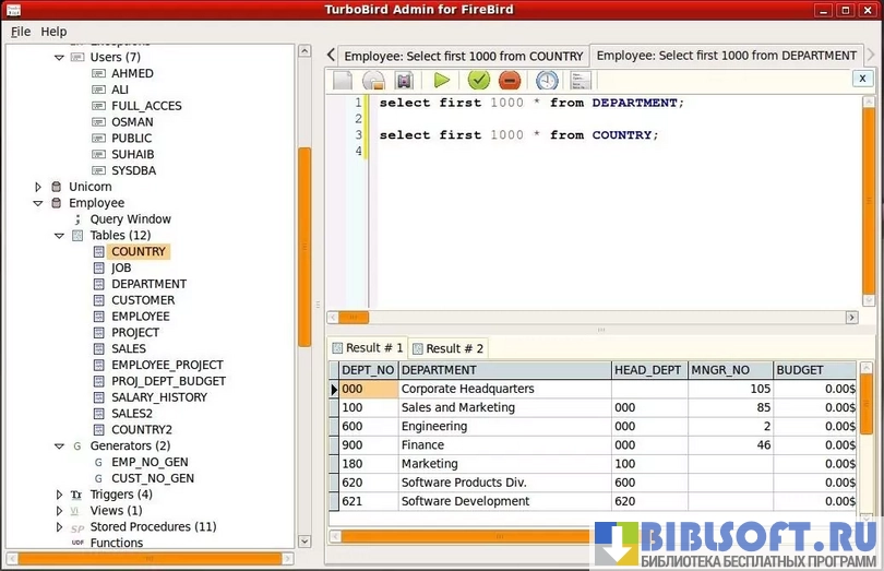 Firebird – реляционная СУБД для Windows. Предназначена для менеджмента информационных баз данных промышленных систем. Совмещает в себе функционал серверной и интерфейсной частей СУБД. Способна параллельно взаимодействовать с сотнями независимых информационных баз. Поддерживает возможность одновременной правки записей несколькими пользователями.