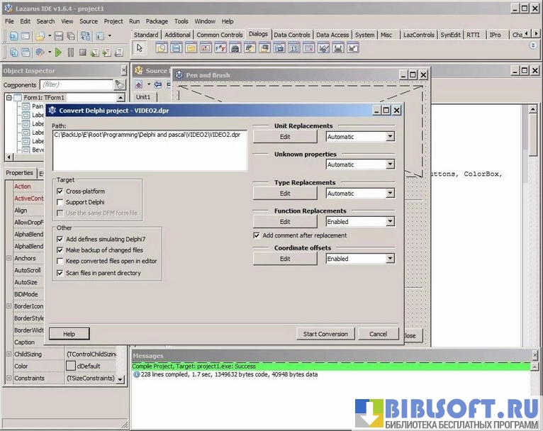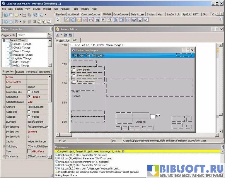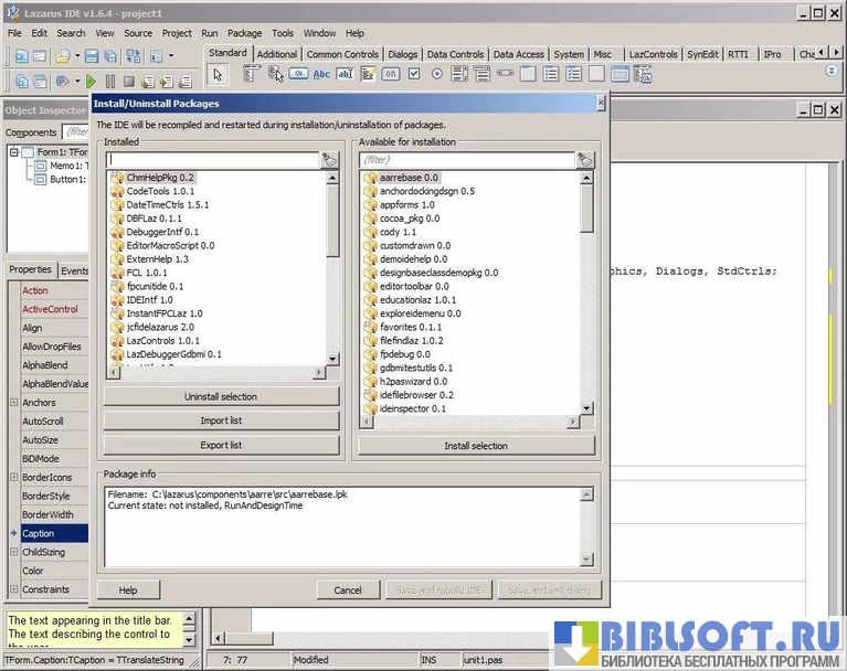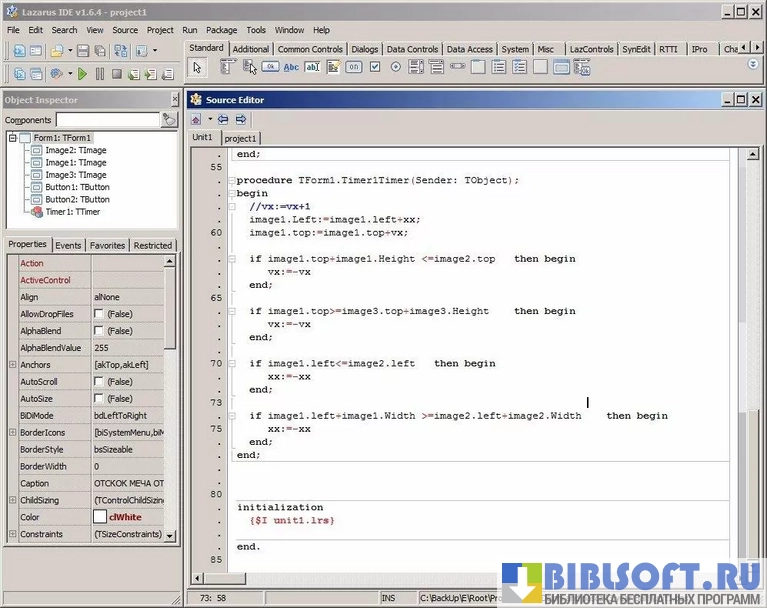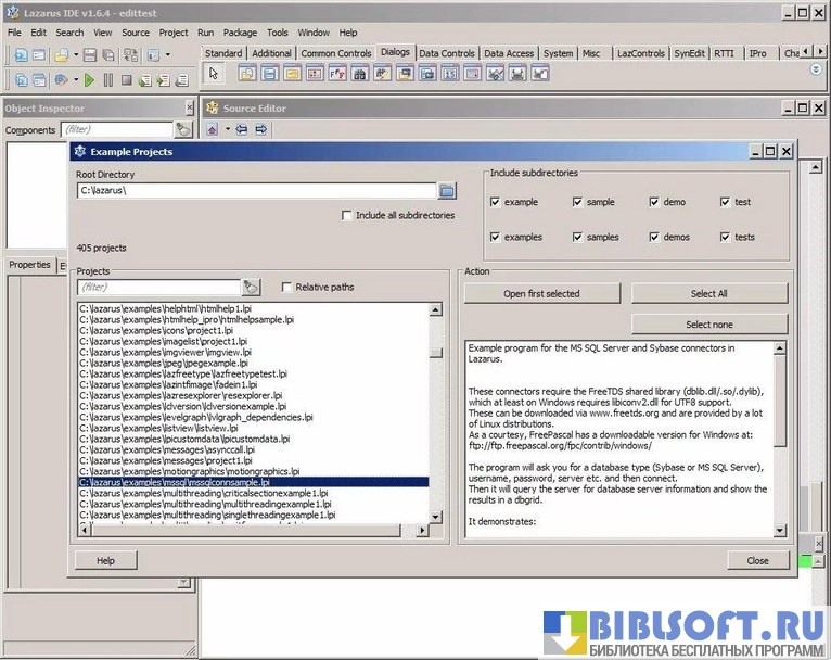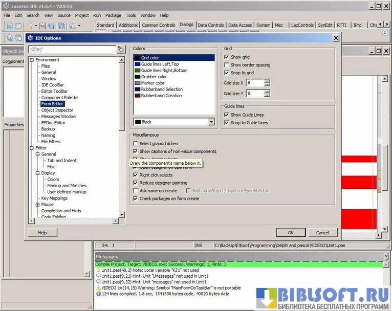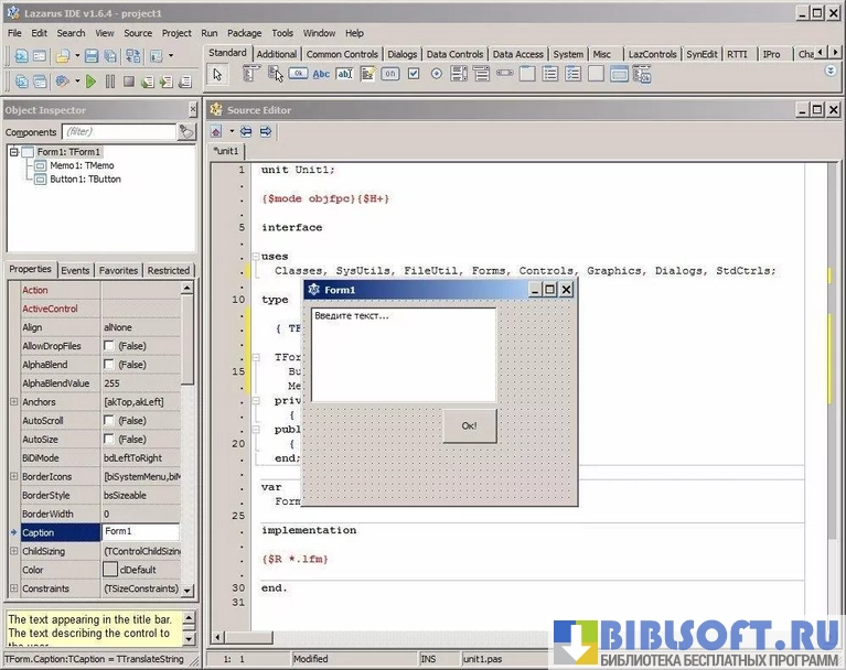Среда Lazarus, несмотря на свою бесплатность и открытый исходный код, обладает обширным функционалом. Например, программисты могут воспользоваться встроенным визуальным проектировщиков форм и большой библиотекой готовых компонентов программ. В этой библиотеке содержится коллекция элементов, способных полностью заменить элементы VCL – окна, кнопки, всевозможные поля и заголовки. Используя готовые примеры из библиотеки, можно создать полностью работоспособное простое приложение, наделив его графическим интерфейсом со всеми необходимыми элементами управления.